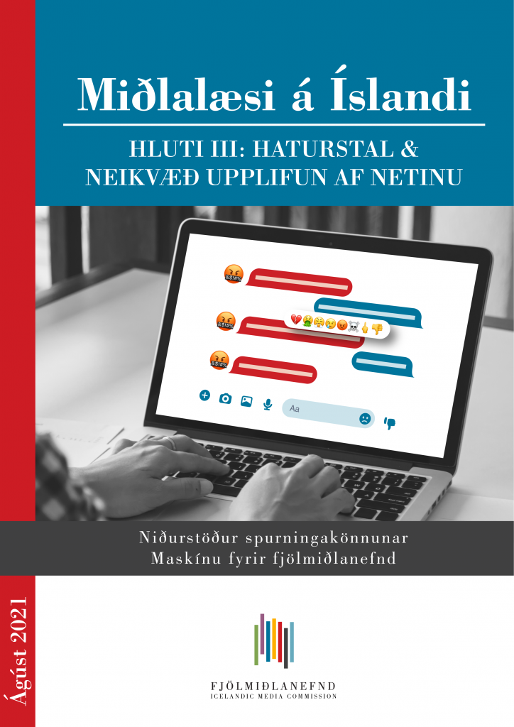 Mun meira er um haturstal, neteinelti, ögranir og háðung í athugasemdakerfum á Íslandi en í Noregi. Þetta kemur fram í nýrri skýrslu fjölmiðlanefndar um haturstal og neikvæða upplifun af netinu sem byggir á niðurstöðum úr víðtækri spurningakönnun sem lögð var fyrir í febrúar og mars 2021. Helmingur þátttakenda sagðist hafa orðið varkárari í að lýsa skoðunum sínum í umræðum á netinu í kjölfar háðs eða ögrunar, 32,8% sögðust frekar taka þátt í umræðum í lokuðum hópum og 20,6% hættu að taka þátt í umræðum á netinu. „Þar sem netið er mikilvægur samskiptavettvangur í lýðræðislegri umræðu má telja alvarlegt ef hluti fólks telur sig verða fyrir áreiti, neteinelti eða haturstali og veigrar sér jafnvel við því að taka þátt í opinberri umræðu. Slík þróun getur haft alvarlegar afleiðingar fyrir þróun lýðræðis,“ segir Elfa Ýr framkvæmdastjóri fjölmiðlanefndar.